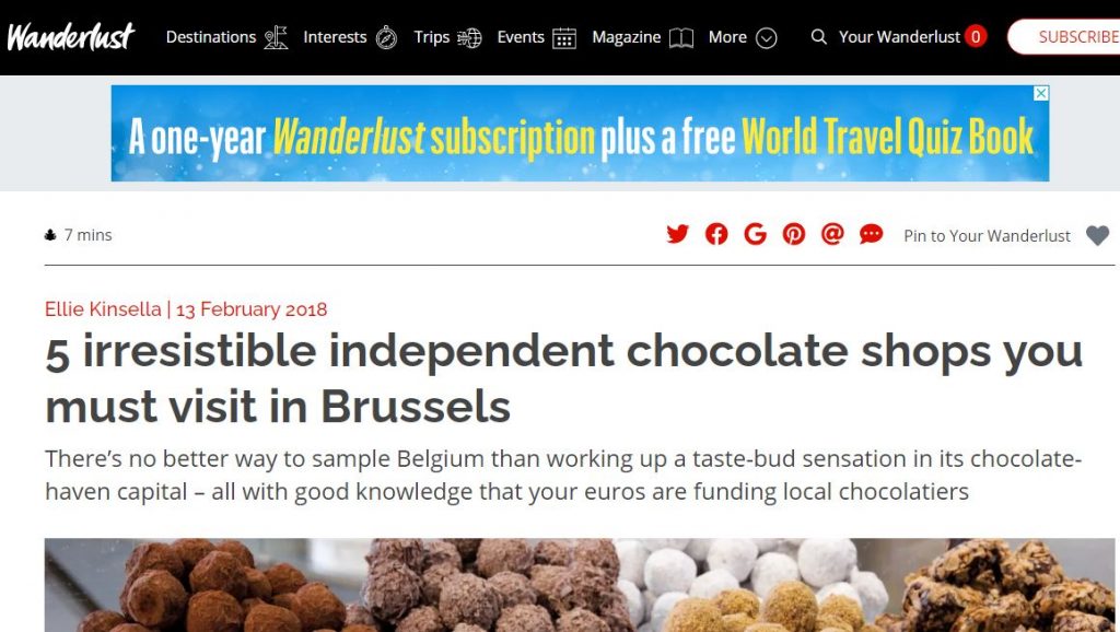 Wanderlust consacre notre chocolaterie indépendante à Bruxelles